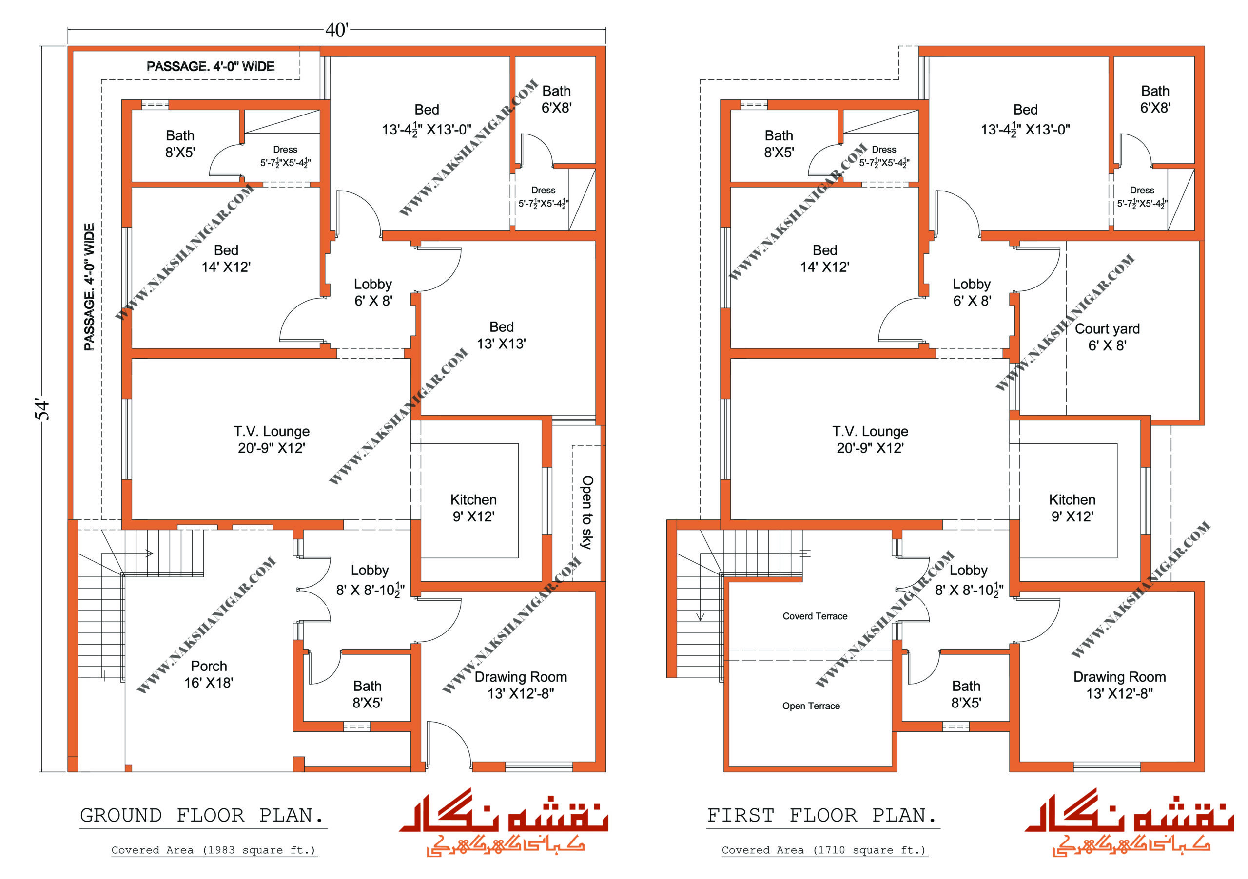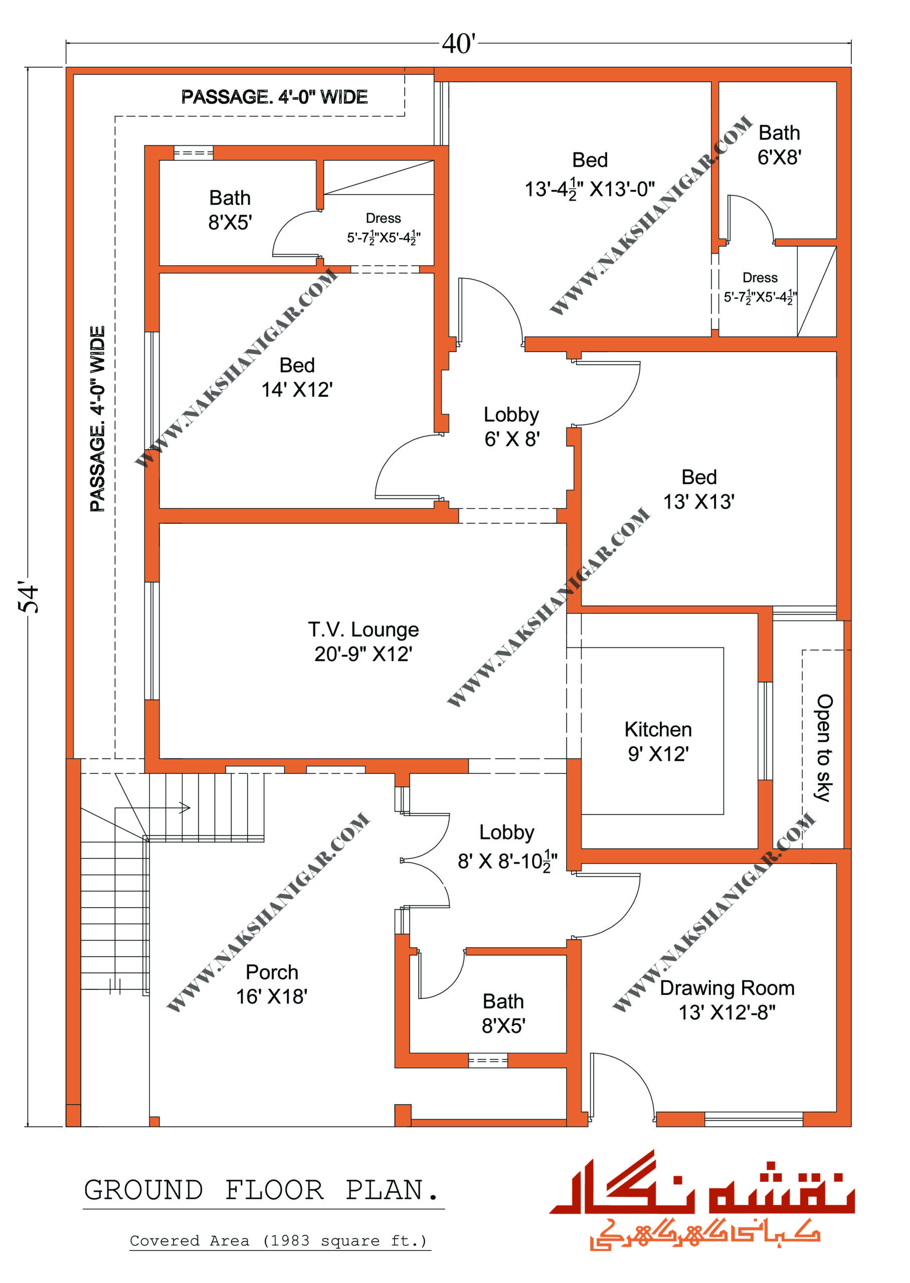 A 40-foot-wide front, with just 54 feet in depth, located in the bustling city of Peshawar. Designing a spacious, comfortable, and beautiful house on such a layout isn’t easy. But that’s where the magic of NakshaNigar.com shines. This is more than a blueprint – it’s a carefully curated journey into space, sunlight, and soulful design.